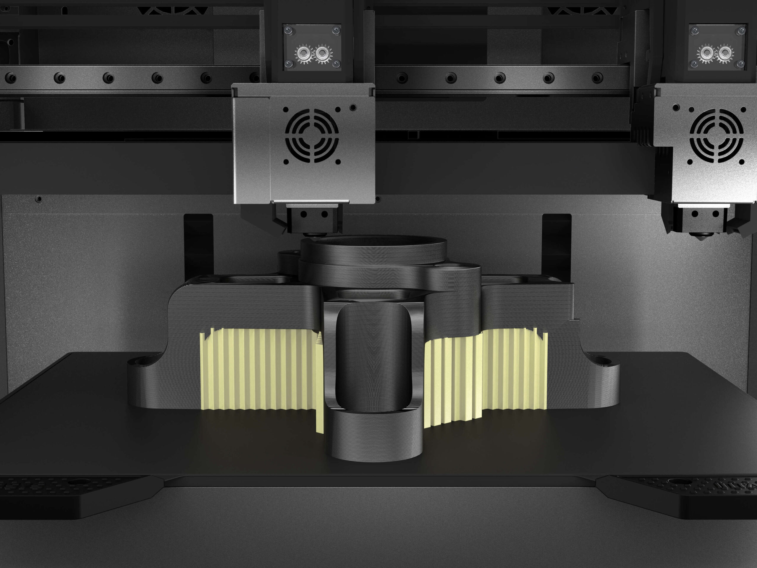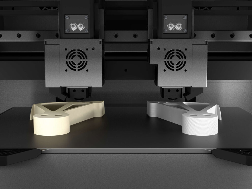 The independent dual-extrusion (IDEX) system supports multiple industrial workflows: